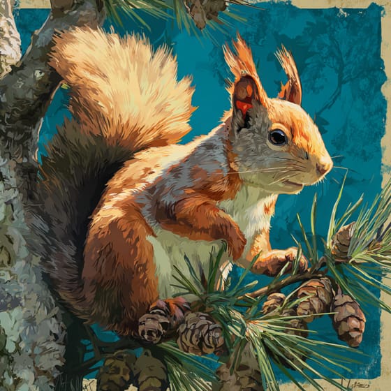 sammelt und frisst Samen aus ihren Zapfen