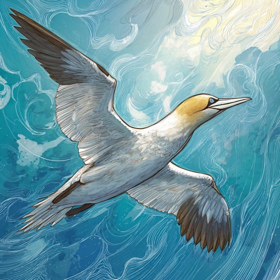 Diving seabird that preys on surface-dwelling mackerel schools.