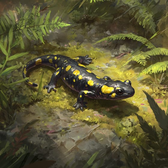 The Marbled Salamander is a unique salamander with beautiful marbled patterns. They are shy and enjoy hiding under rocks!