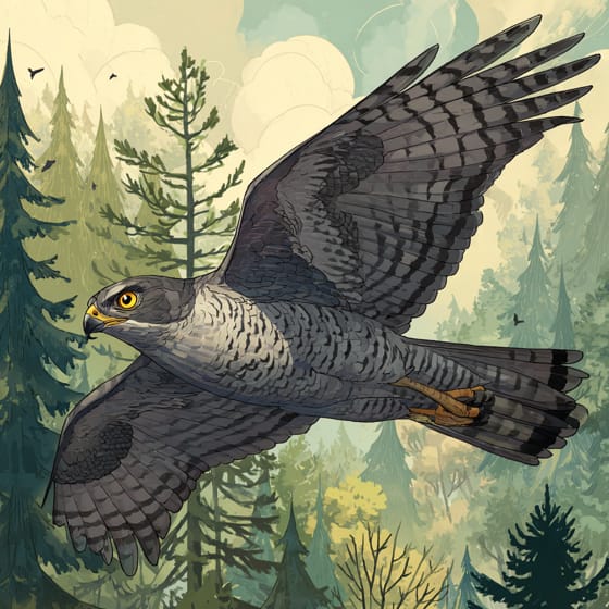 A natural predator, hunting squirrels in the forest canopy.